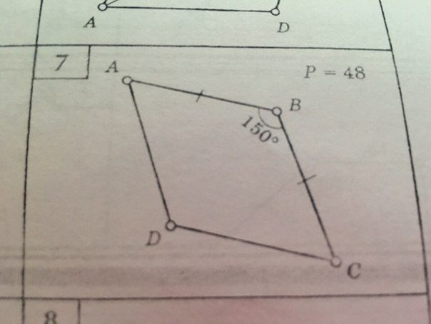 Нам даётся ∠В=150°, для того, чтобы мы могли найти ∠С=30°, и вычислить высоту DO. DO катет прямоугольного ΔDOC и равен половине гипотенузы DC, т.е. 6.