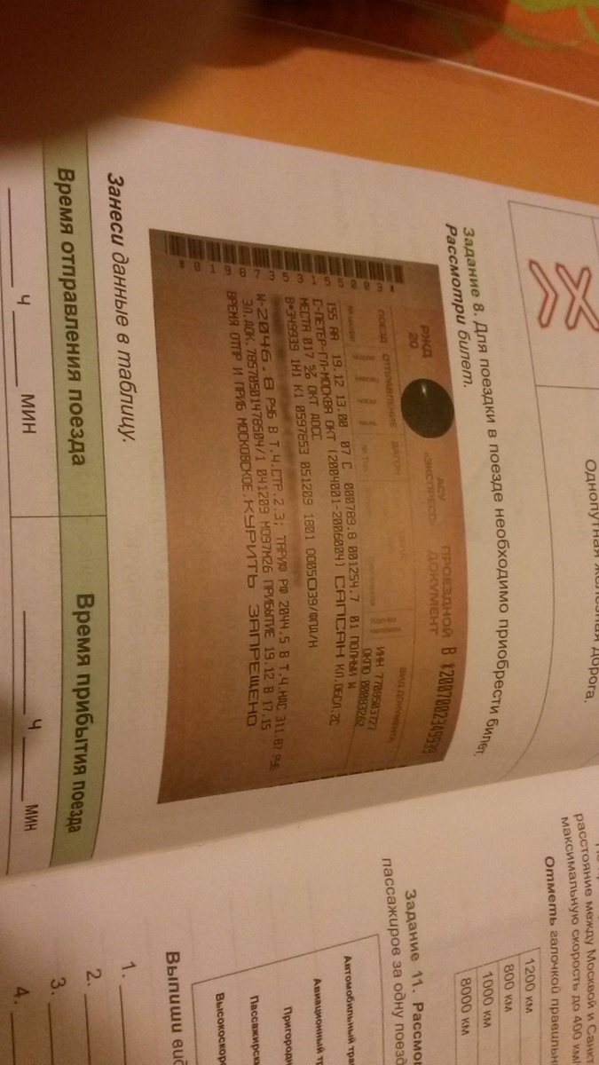 8 Задание.Для поездки необходимо приобрести билет.Рассмотри билет.(Тут есть фото свверзу)