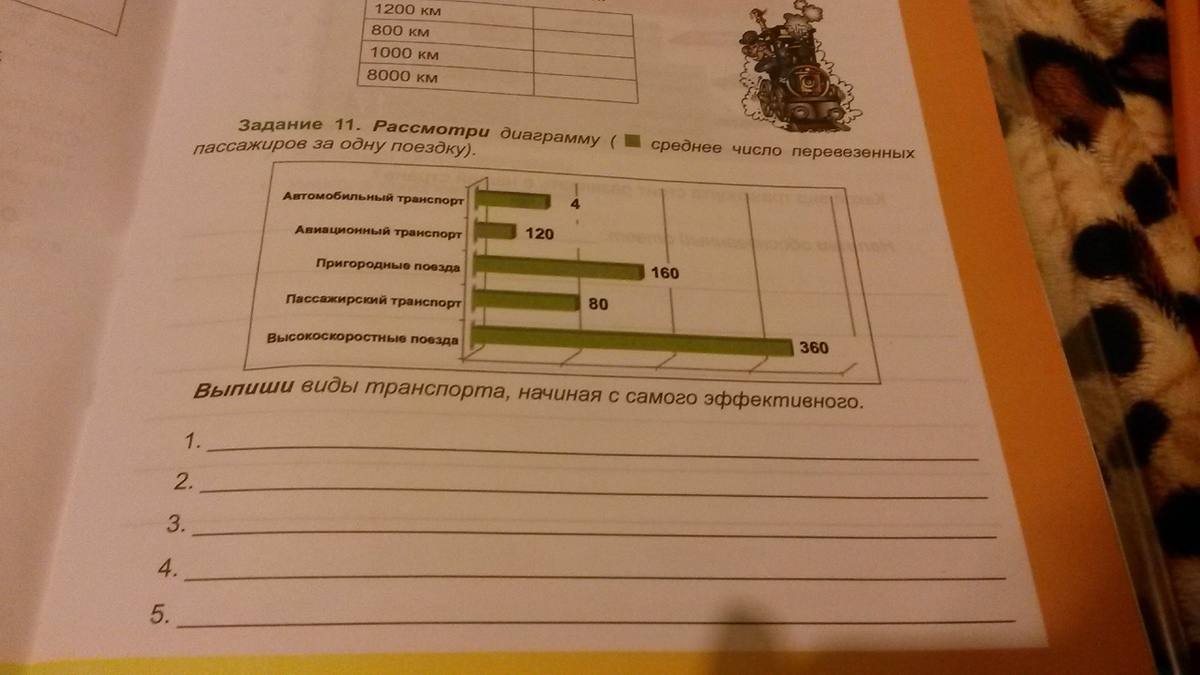 11 Задание.Рассмотри диаграмму среднее число перевезенных пассажиров за одну поездку.Выпиши виды транспорта,начиная с самого эффективного.