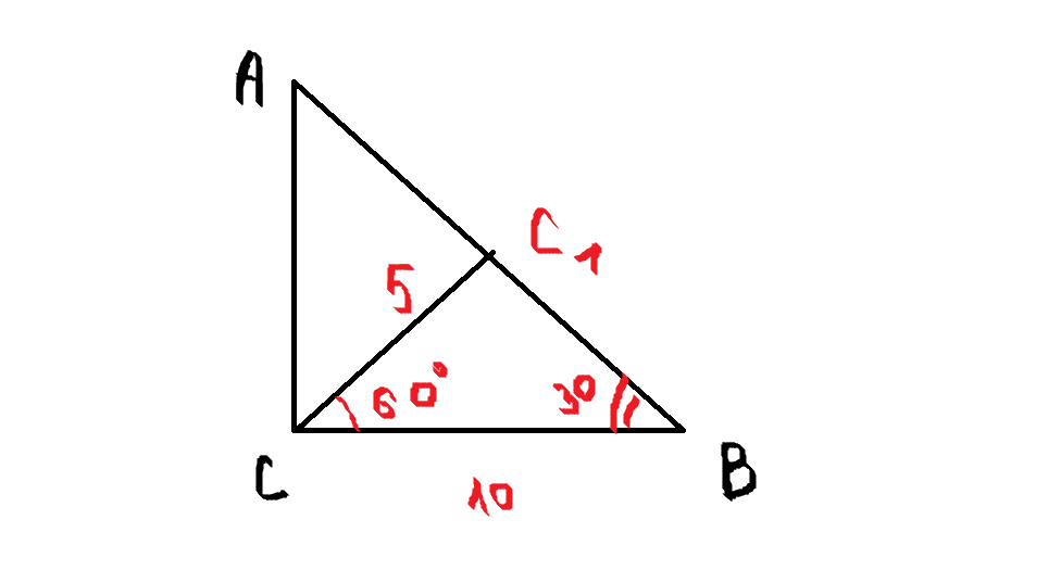 высота и есть этот катет. а так как угол C1BC 30 градусов, то следовательно угол CAB 60