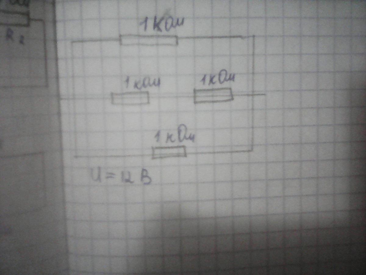 где 2 рядом резистора-послед соед. R=R1+R2=1000+1000=2000 Ом