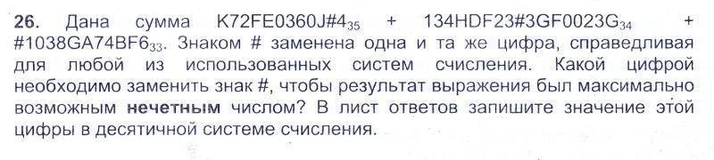 Поскольку четность или нечетность числа в любой системе счисления определяется четностью или нечетностью последней цифры в записи числа и искомое число не встречается на этой позиции, оно может быть как четным так и нечетным. Из-за того, что искомое число должно быть максимальным в системе счисления с наименьшим основанием из 33, 34 и 35. Таким числом будет число 32.