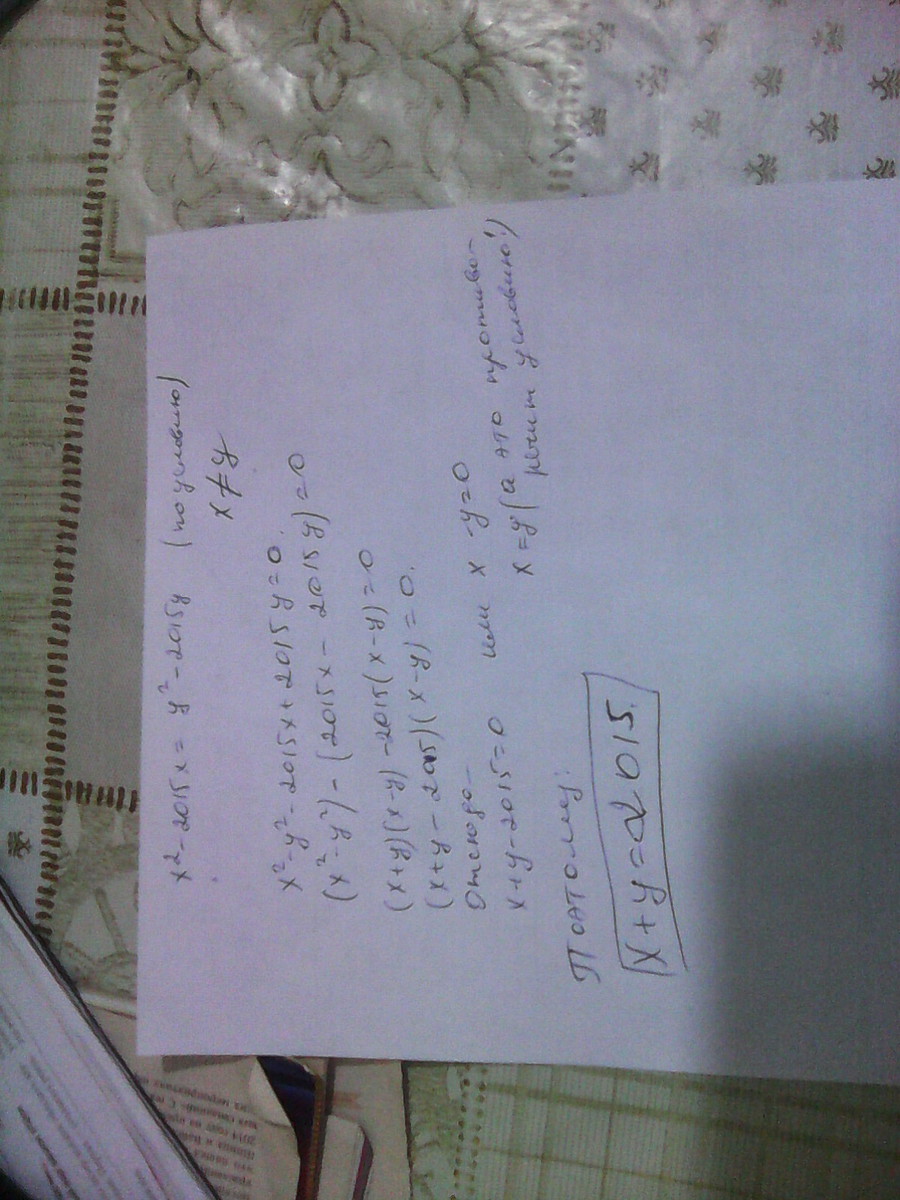 два различных числа x и y (не обязательно целых) таковы, что :x²-2015x=y²-2015y найдете сумму этих чисел