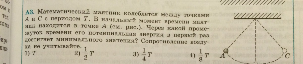 значит в сереедине потенциальная наименьшая , а это 1/2Т,т.е 2 ответ