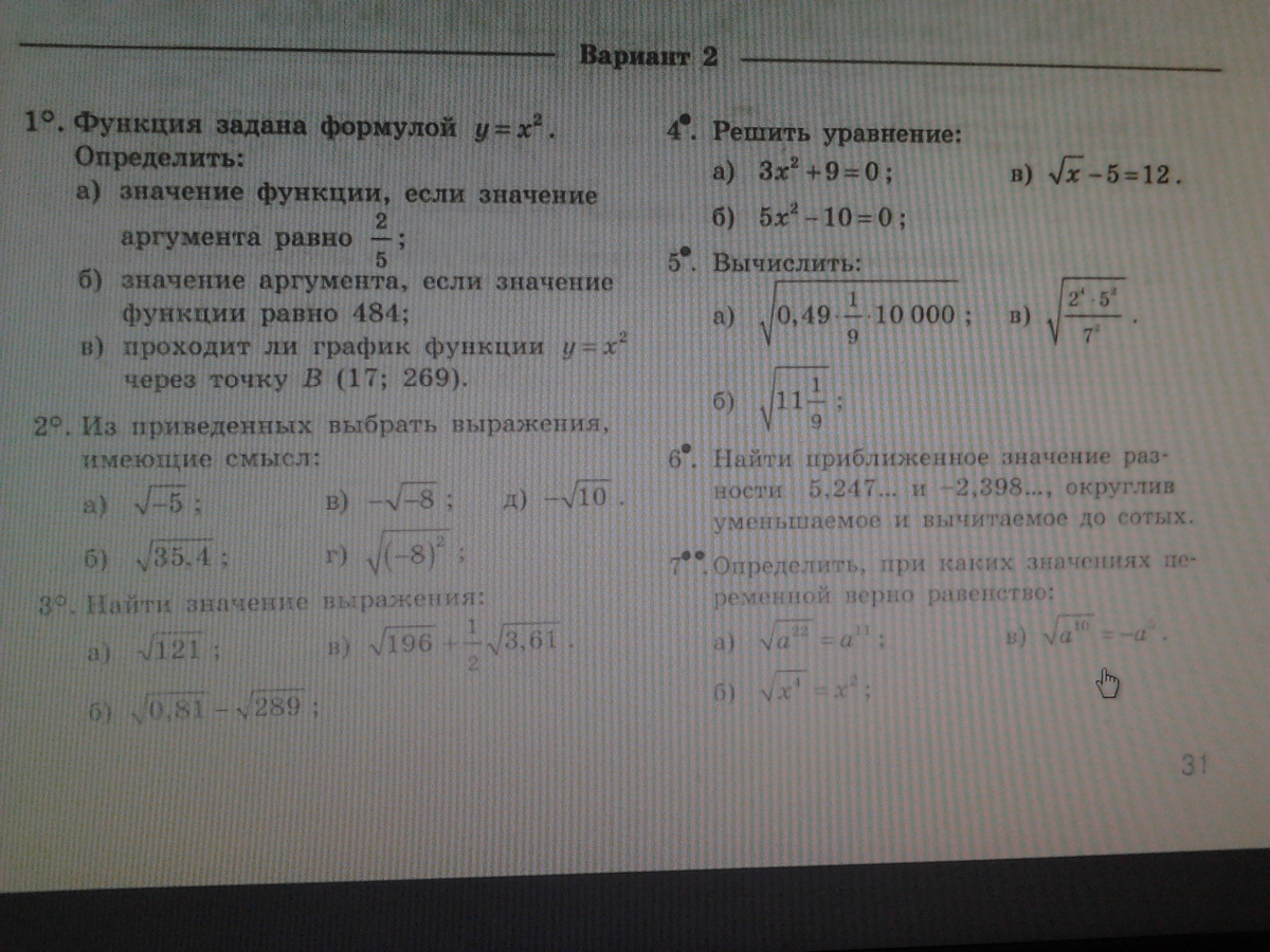 1. а. подставляешь 2/5 вместо икса. y=4/25