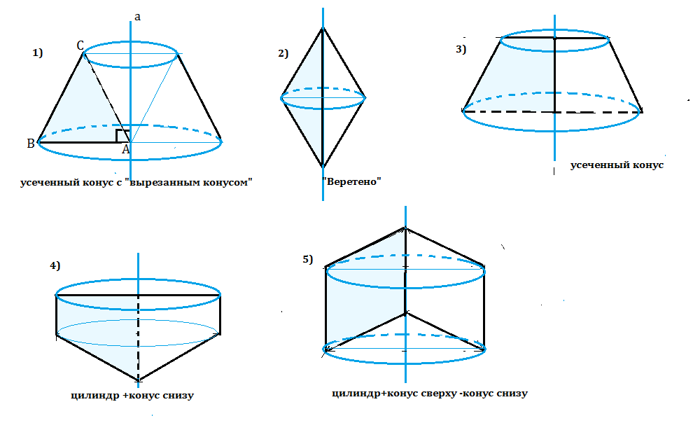 4) Тело, полученное вращением прямоугольной трапеции вокруг прямой содержащее большее основание