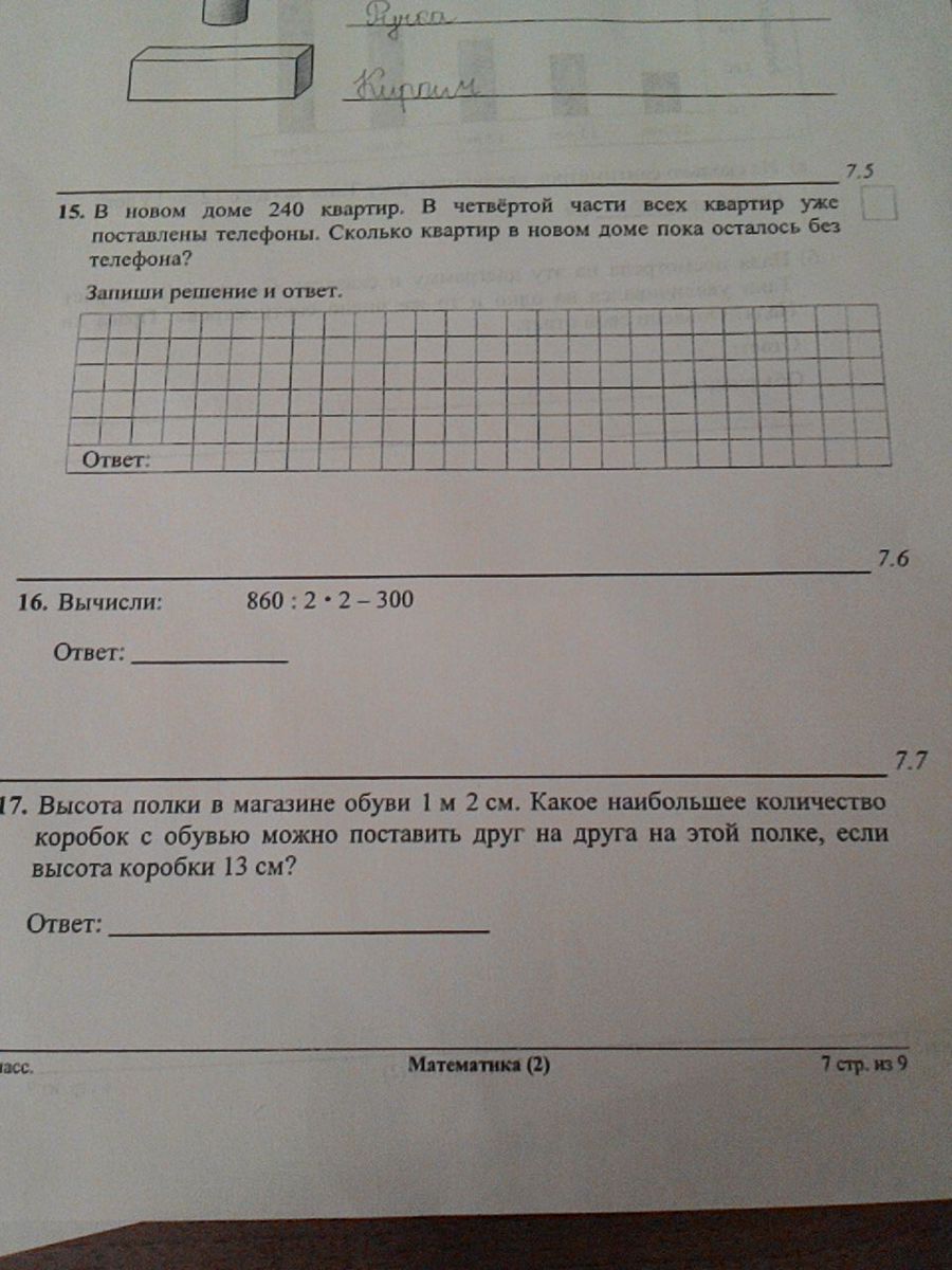 240:4=60 240-60=180-людей без телефона Откуда четверка ? Это четвертая часть всех квартир поэтому делим на 4.