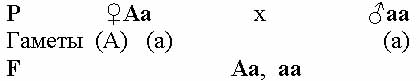 Ответ: Соотношение по фенотипу и генотипу в потомстве составляет 1:1 или 50% 50%.