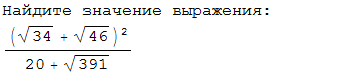 =((√34)²+2√34*46+(√46)²)/(20+√391)=(34+46+2√1564)/(20+√391)=(80+2√4*391)/(20+√391)=4(20+√391)/(20+√391)=4