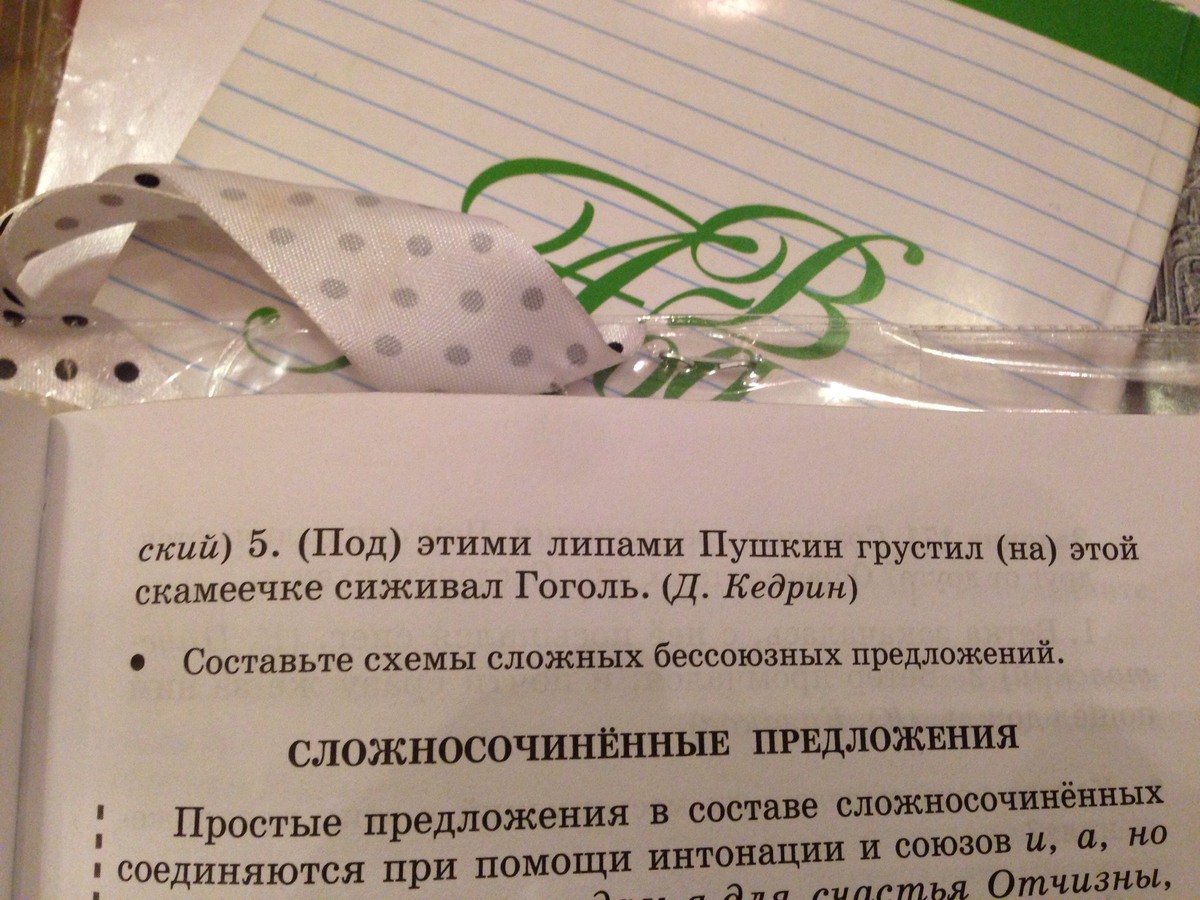 Под этими липами Пушкин грустил, на этой скамеечке сиживал Гоголь. Схема: под липами - - - - - - этипи (волна) подлеж сказуем, на скамеечке- - - - - -этой (волна) сказуем подлеж.