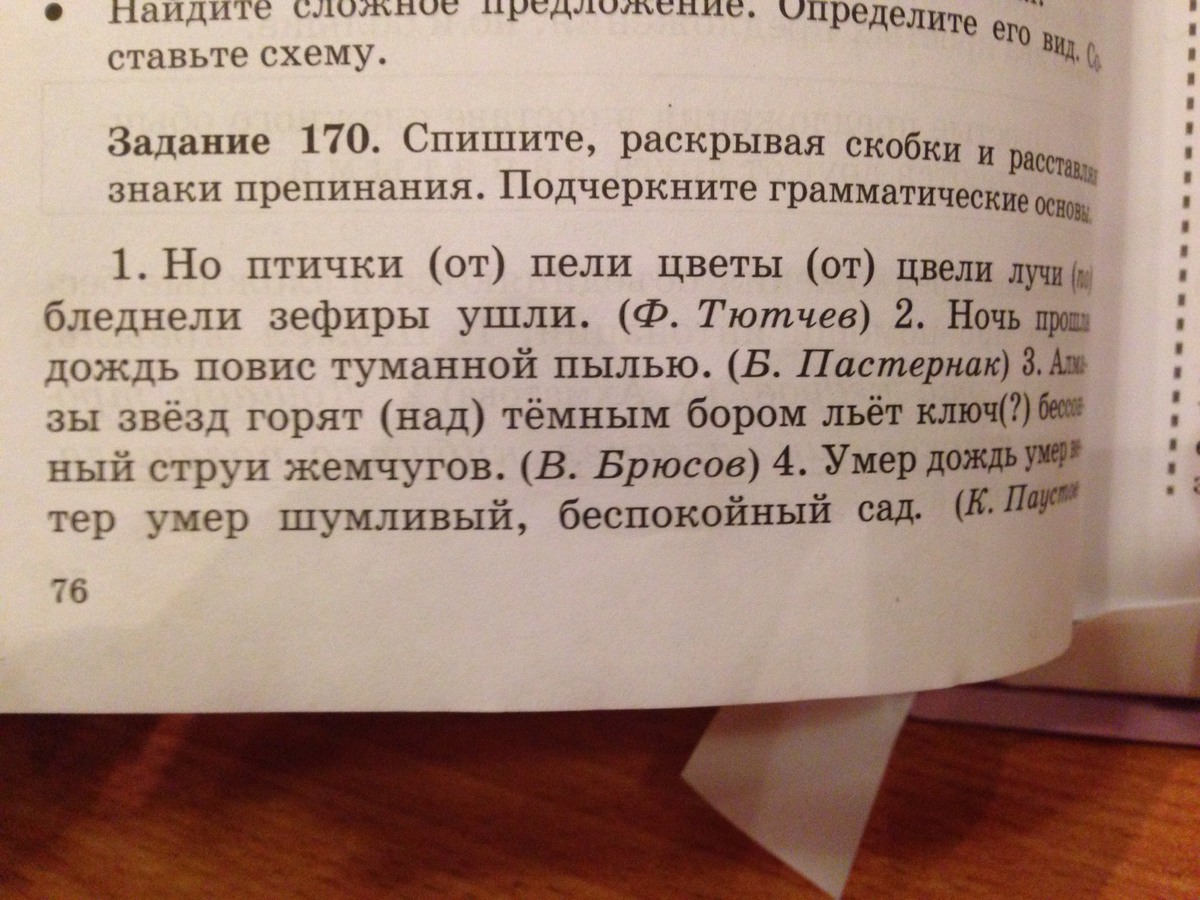 Но птички отпели, цветы отцвели, лучи побледнели, зефиры ушли. Схема: Но подлеж (прямая линия) сказуемое (две линии) остальные через запятую тоже самое.