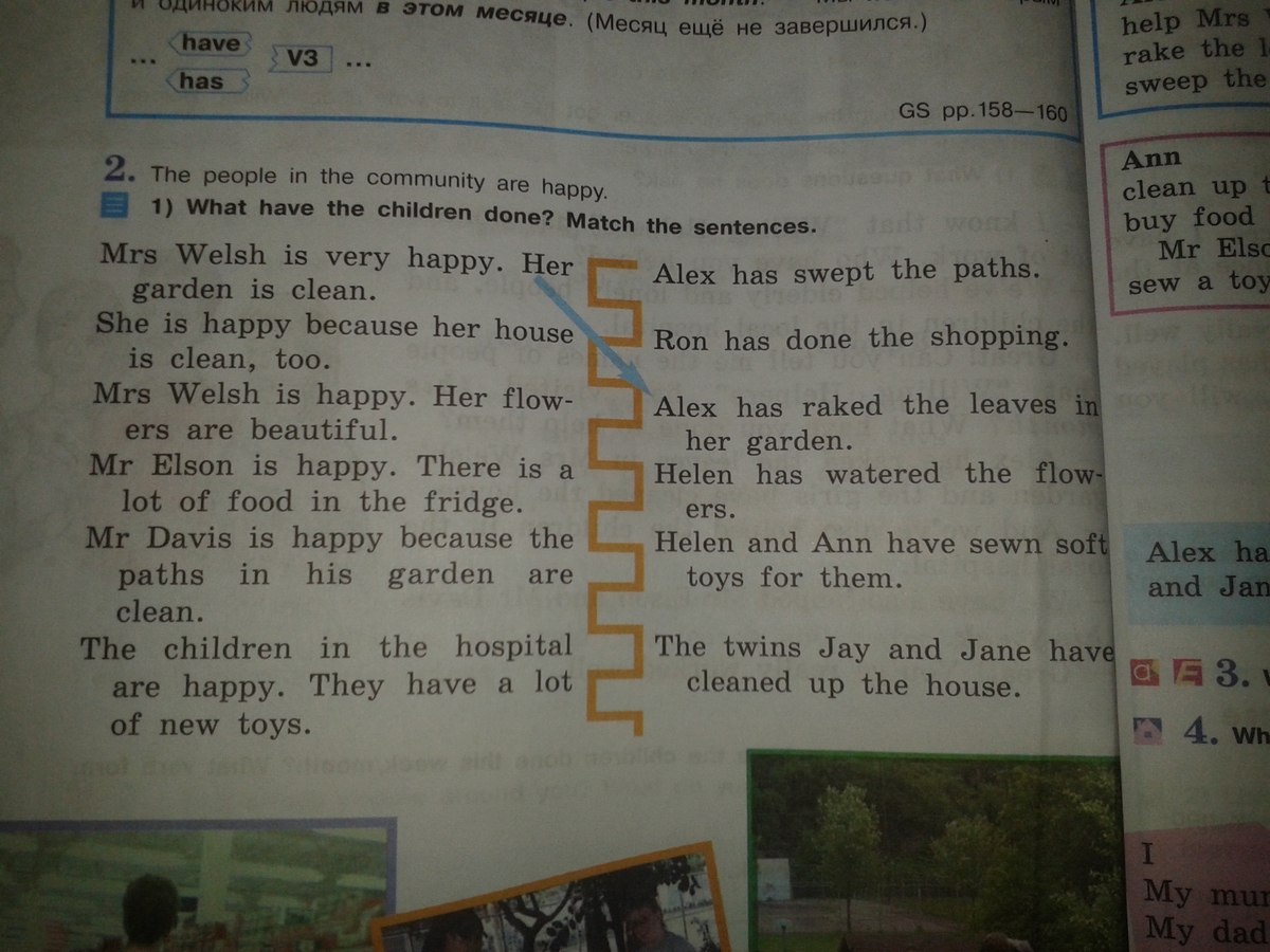 5. Mr Davis is happy because the paths in his garden are clean. — Alex has swept the paths.