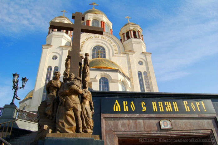 Он представляет собой композицию из семи фигур, которая изображает тот самый момент, когда семью спустили в подвал для расстрела. Авторы памятника, вероятно, хотели сделать так, чтобы каждый, кто входит в Храм на Крови, невольно вспоминал ту страшную трагедию, что произошла много лет назад в этом месте. Думаю, это у них очень хорошо получилось: при виде памятника в голове сразу всплывают жуткие сцены из прошлого, и становится не по себе.