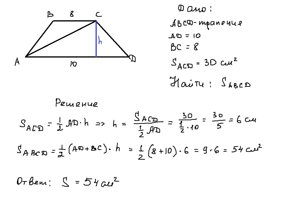 S — площадь трапеции