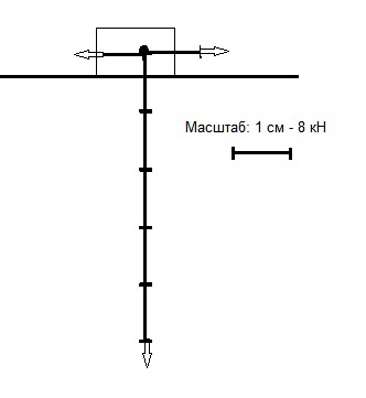 Сила сопротивления: 6 кН; 6/8 = 0,75 (откладываем 0,75 см влево)
