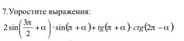 Упростить выражение 2sin(3π/2 +α) *sin(π+α) +tq(π+α)*ctq(2π-α)