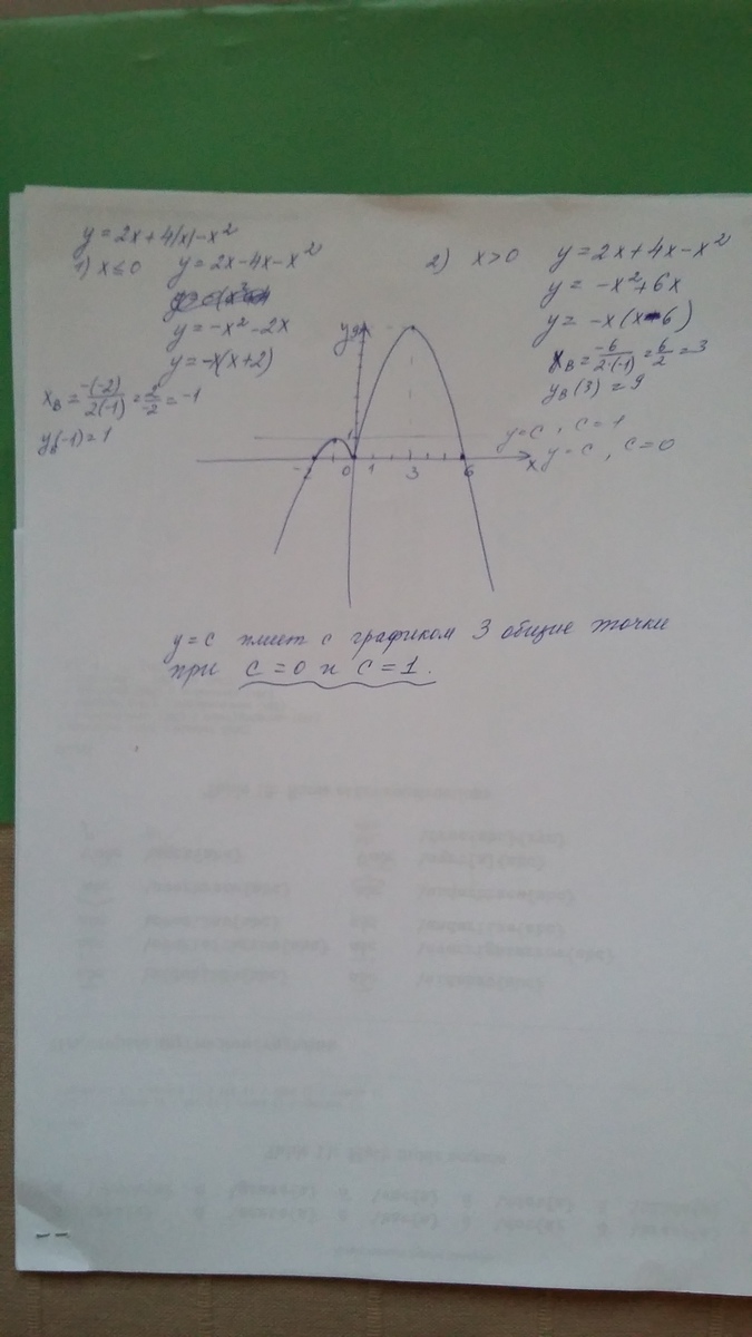 y=-2x+4|x|-x^2 построить график функции и определить при каких с прямая y=c имеет с графиком ровно 3 общие точки
