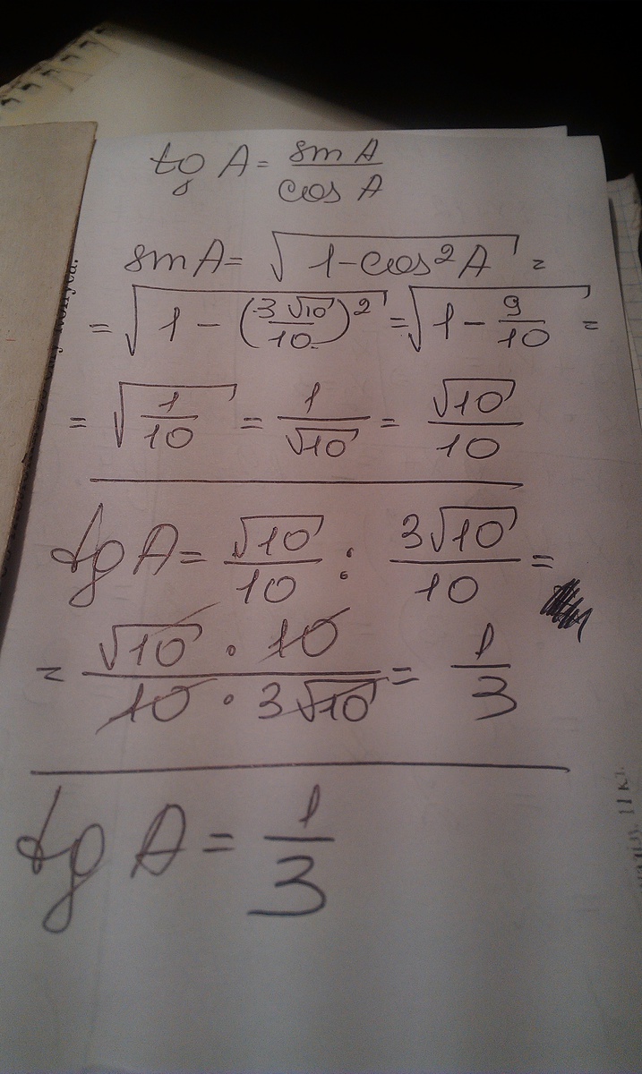 В треугольнике АВС угол С-прямой, cos A=3√1010. найти: tg A