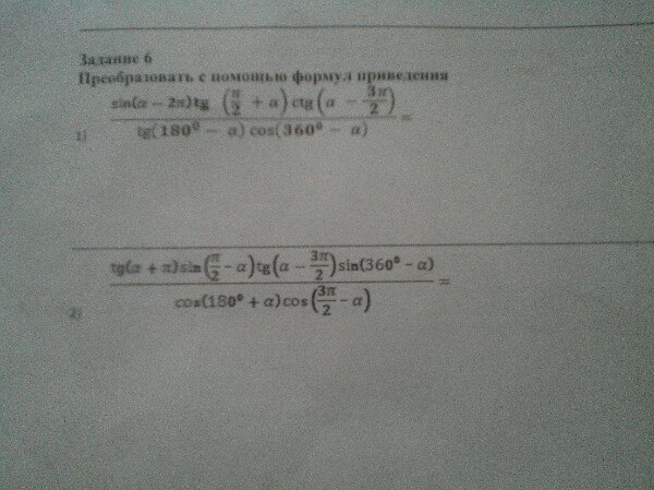 пример не переписывала 1)...=-sina *ctga(-tga)|tgacosa=sina/sina=1