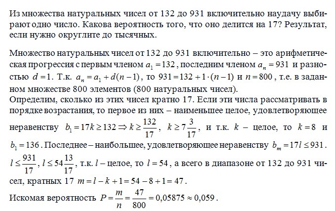 одно число. Какова вероятность того, что оно делится на 17 ? Результат, если нужно,