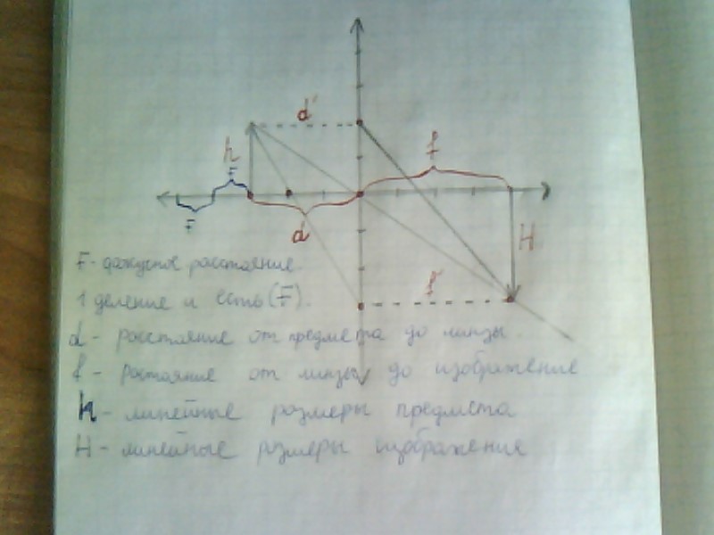 d = 3 м, F = 2 м ⇒ находим фокусное растояние от главного оптического цента до изображения