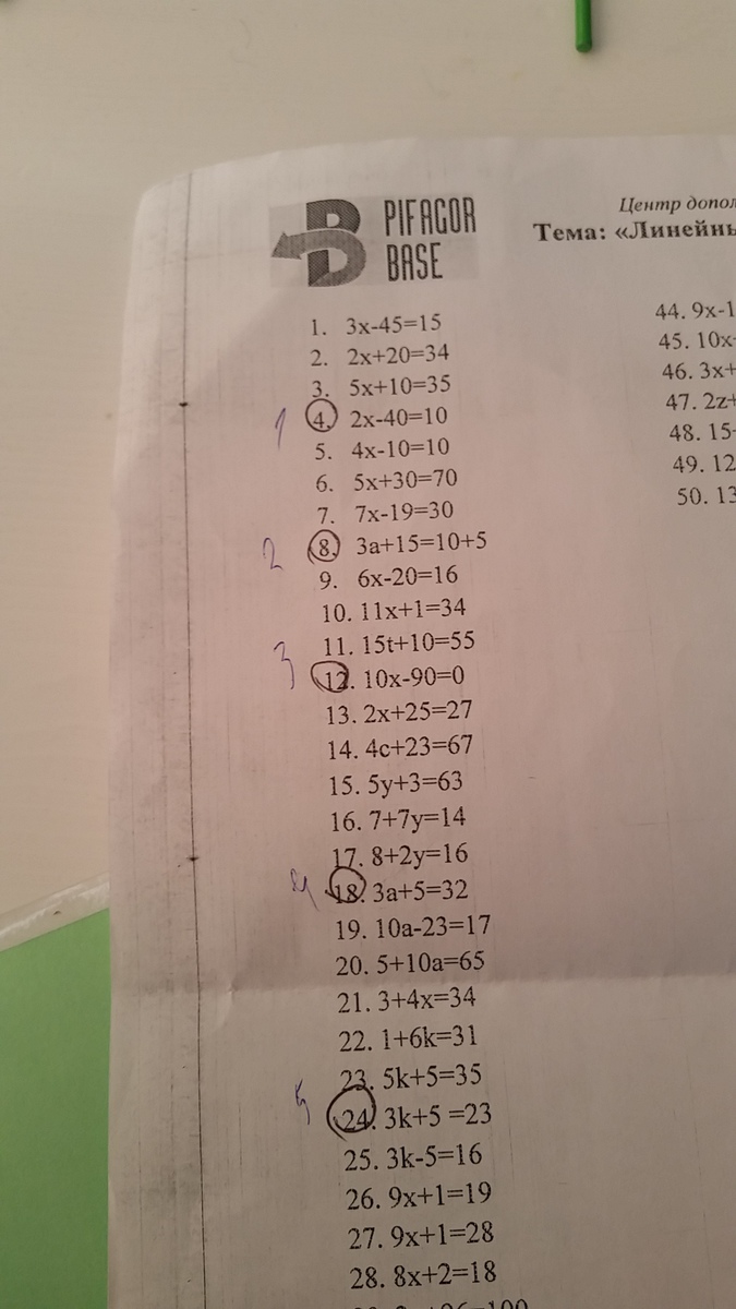 в третьем уравнении не правильно 3а+5=23 3а=23-5 3а= 18 а= 6