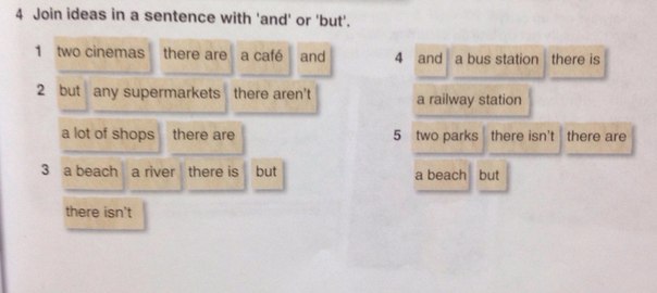 There are a cafe and two cinemas. There are a lot of shops but there aren't any supermarkets.There is a river but there isn't a beach. There is a bus station and a railway station. There are two parks but there isn't a beach.