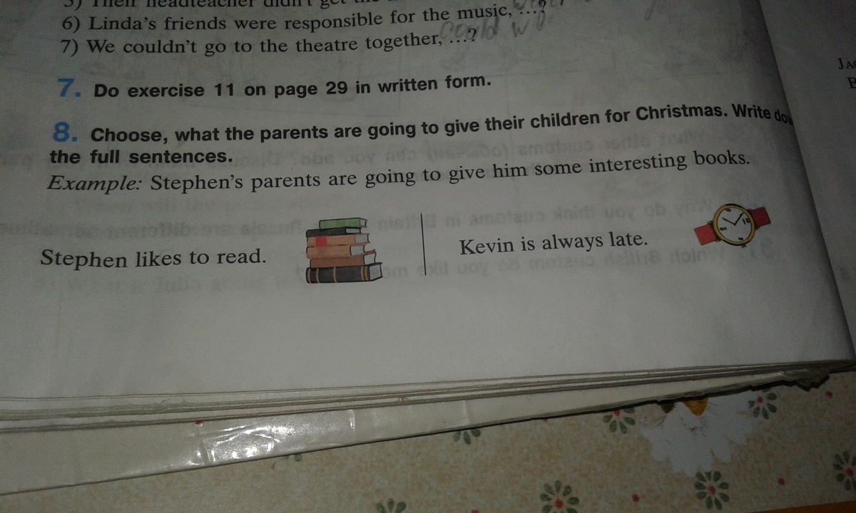 stephens parents are going to give him some interesting books Kevins parents are going to give him very expensive clocks