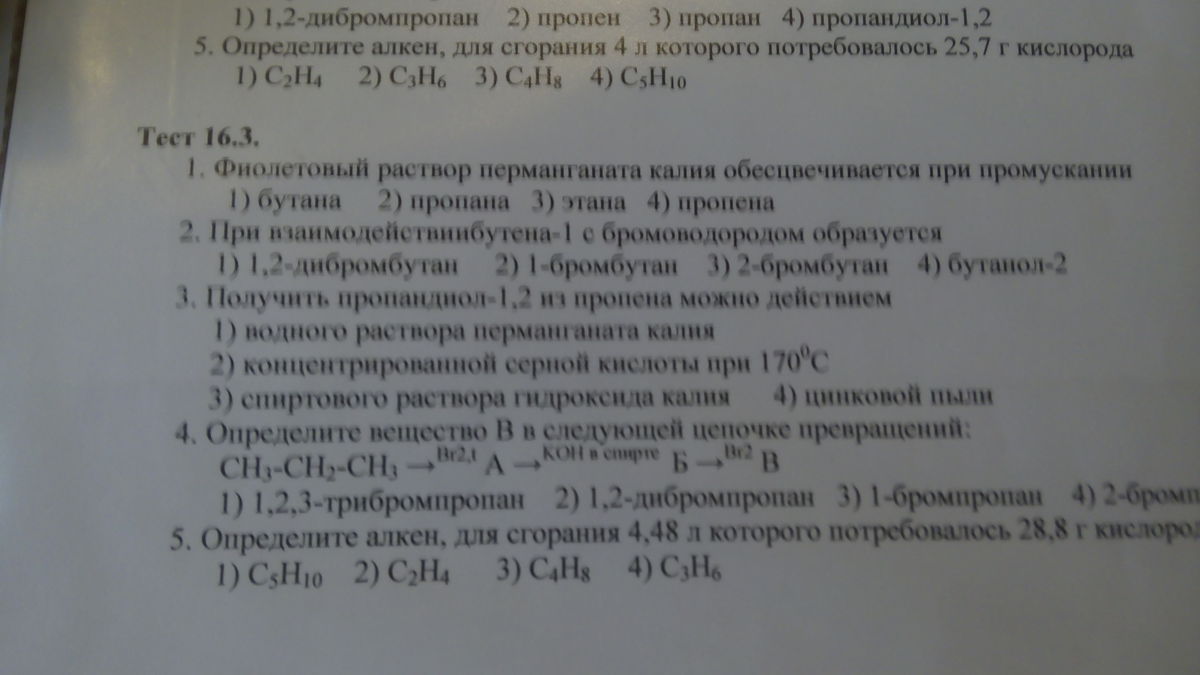напишите уравнение реакции CH3-CH2-CH3--->(Br2сверху стрелки)A--->(KOH в спирте,сверху стрелки)Б--> (Br2сверху стрелки)В