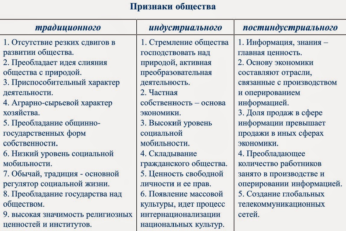 Характерные черты постиндустриального общества: