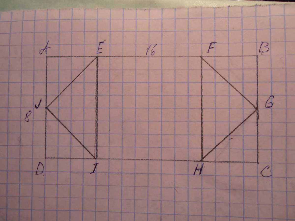 Прямоугольник со старинами 8 и 16 см. От его углов отрезали равные равнобедренные треугольники. Чему равна площадь получившегося шестиугольника.