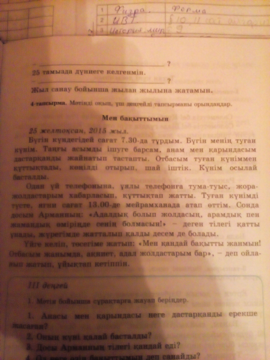 4)Ол неге өзін бақыттымен деп санайды? и ответы на вопросы