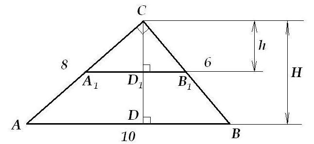 найдите расстояние от гипотенузы до большей средней линии прямоугольного треугольника катеты которого равна 6 и 8 .