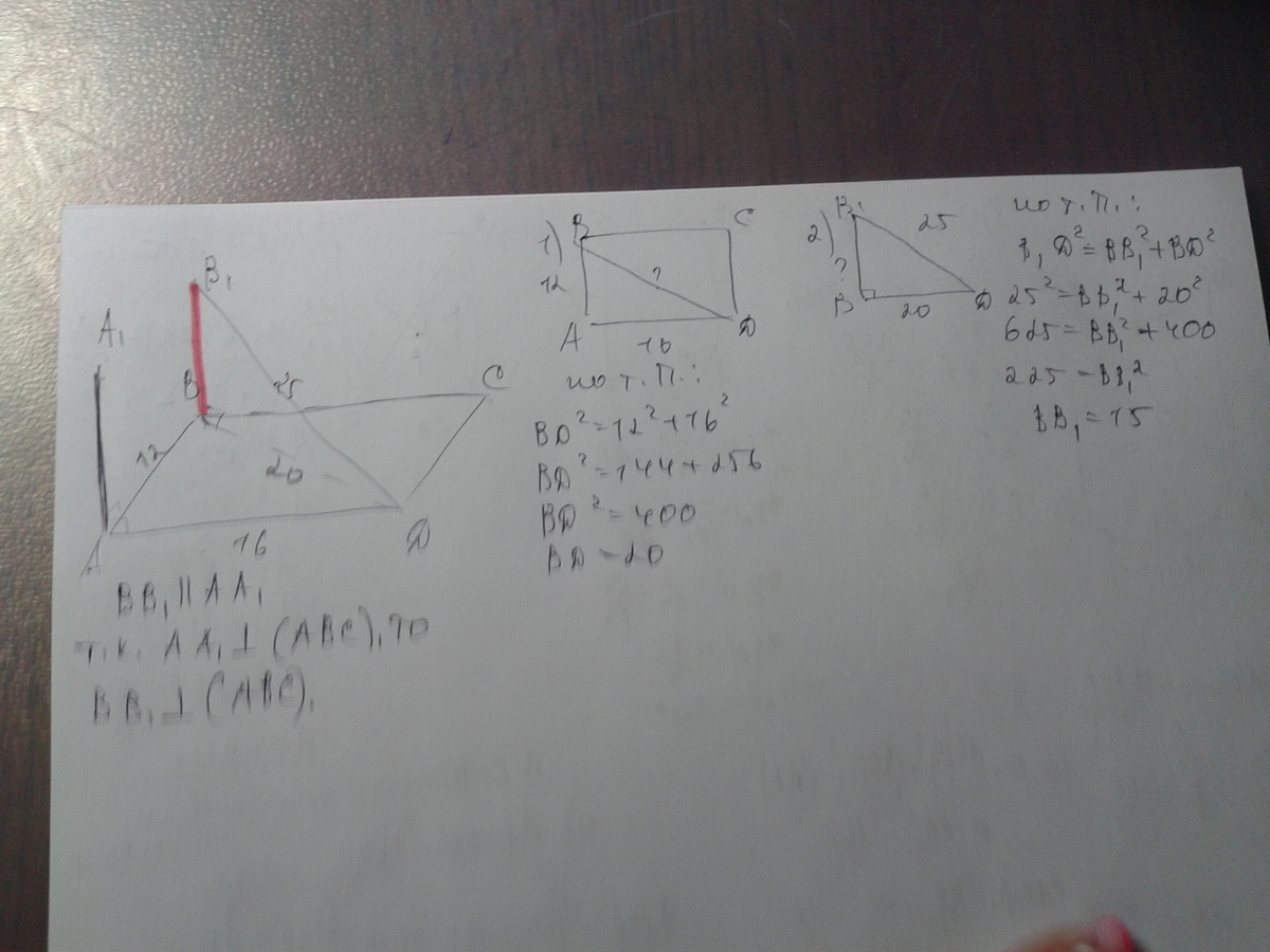 АВ и А1А перпендикулярна АД. Найдите В1В, если В1Д=25см, АВ=12см, АД=16 см.С РИСУНКОМ С РИСУНКОМ С РИСУНКОМ СРОЧНО!!!!!!!!!!! РИСУНОК!