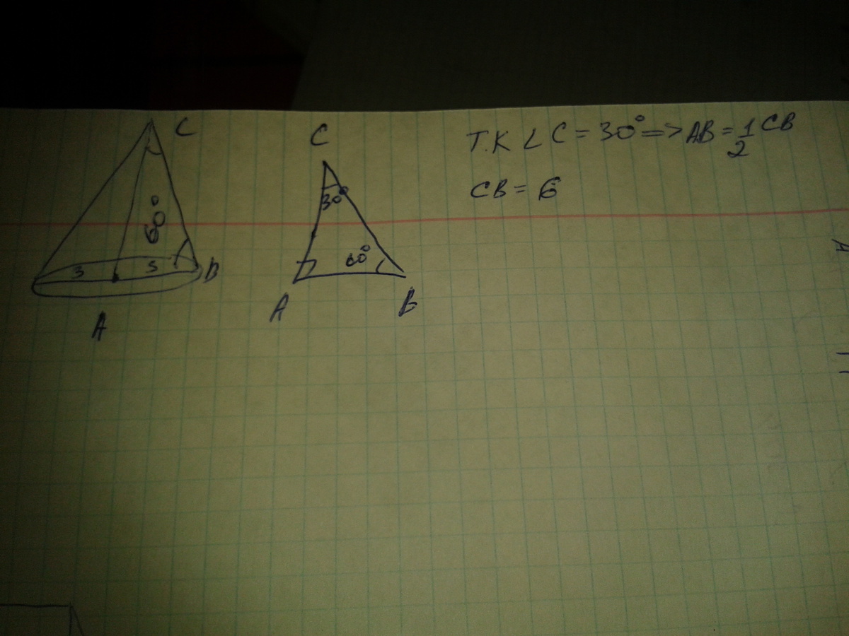 Диаметр основания конуса равен 6. Образующая конуса наклонена к плоскости основания под углом 60 градусов. Найдите образующую конуса.