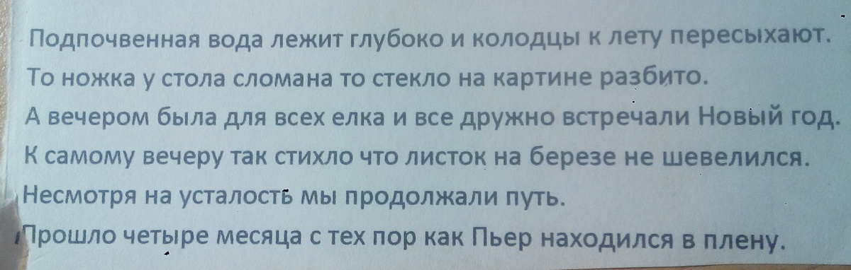 Под почвенная вода лежит глубоко,и колодцы к лету пересыхают(ССП). То ножка стола сломана,то стекло на картине разбита(СПП). А вечером была ёлка для всех,и все дружно встречали Новый год(ССП) К самому вечеру так тихо стало,что листок на березе не шевелится(СПП). Несмотря на усталость,мы продолжали путь.(СПП).Прошло четыре месяца с их пор,как Пьер находился В плену(СПП)