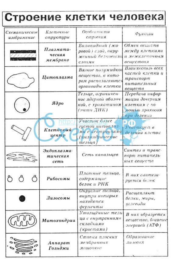Строение клетки человека.
