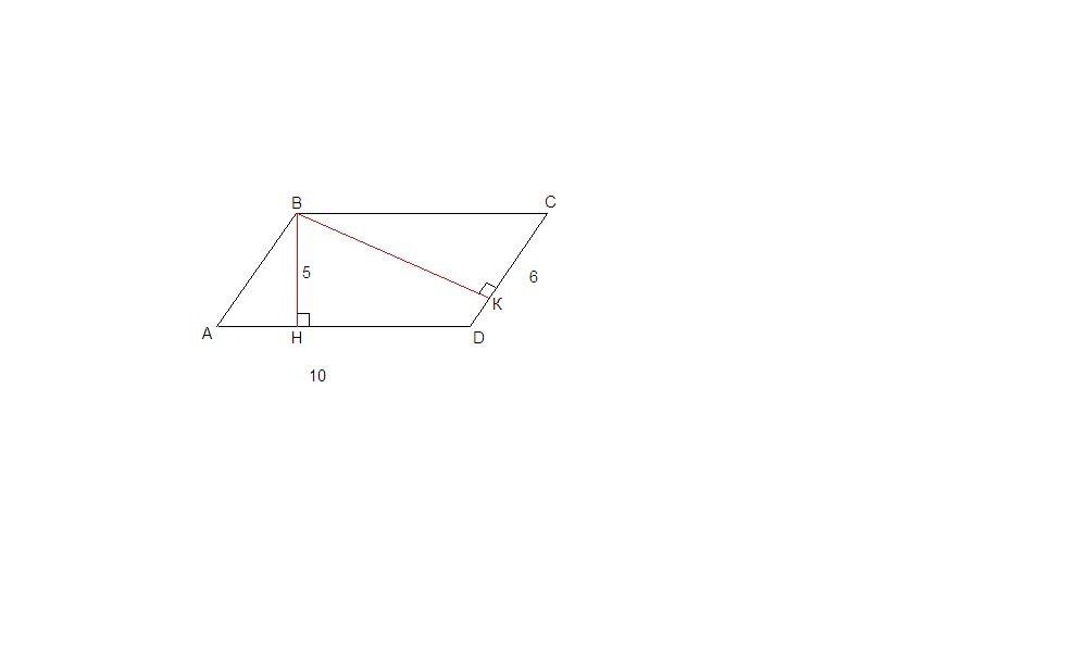 дано стороны параллелограмма равны 6 и 10 см а высота проведённая к большей из них равно 5 см найти высоту проведённой другой стороне
