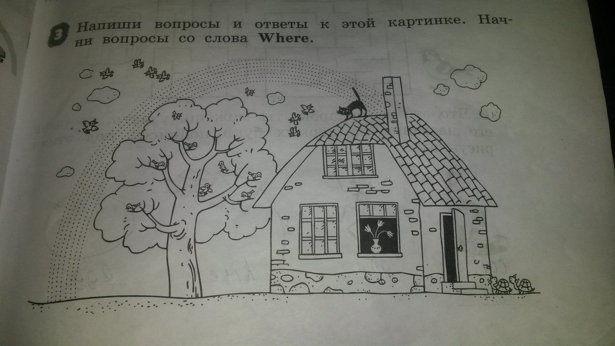 Помогите пожалуйста написать вопросы и ответы к этой картинке . Начиная вопросы со слова where.