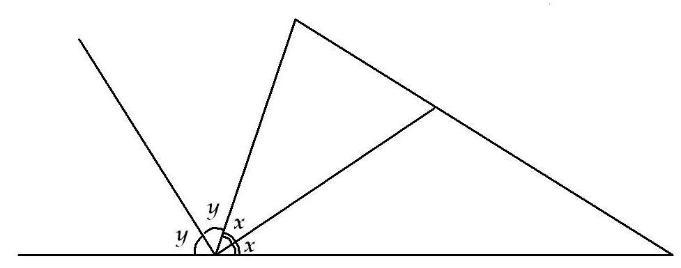 Докажите, что биссектриса внешнего угла треугольника перпендикулярна биссектрисе внутреннего угла при той же вершине.Помогите пожалуйста, буду очень признательна! Заранее спасибо.