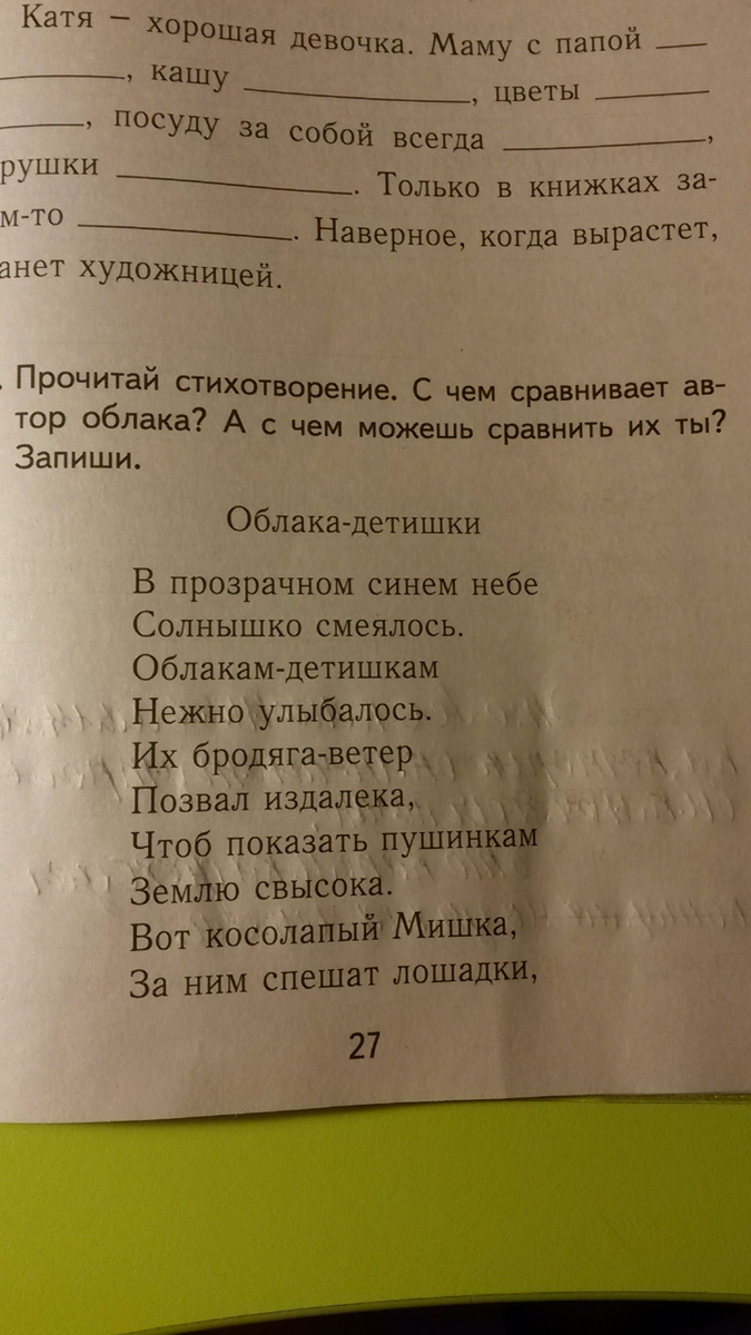 прочитай стихотворение. с чем сравнивает автор облака? а с чем можешь сравнить их ты?