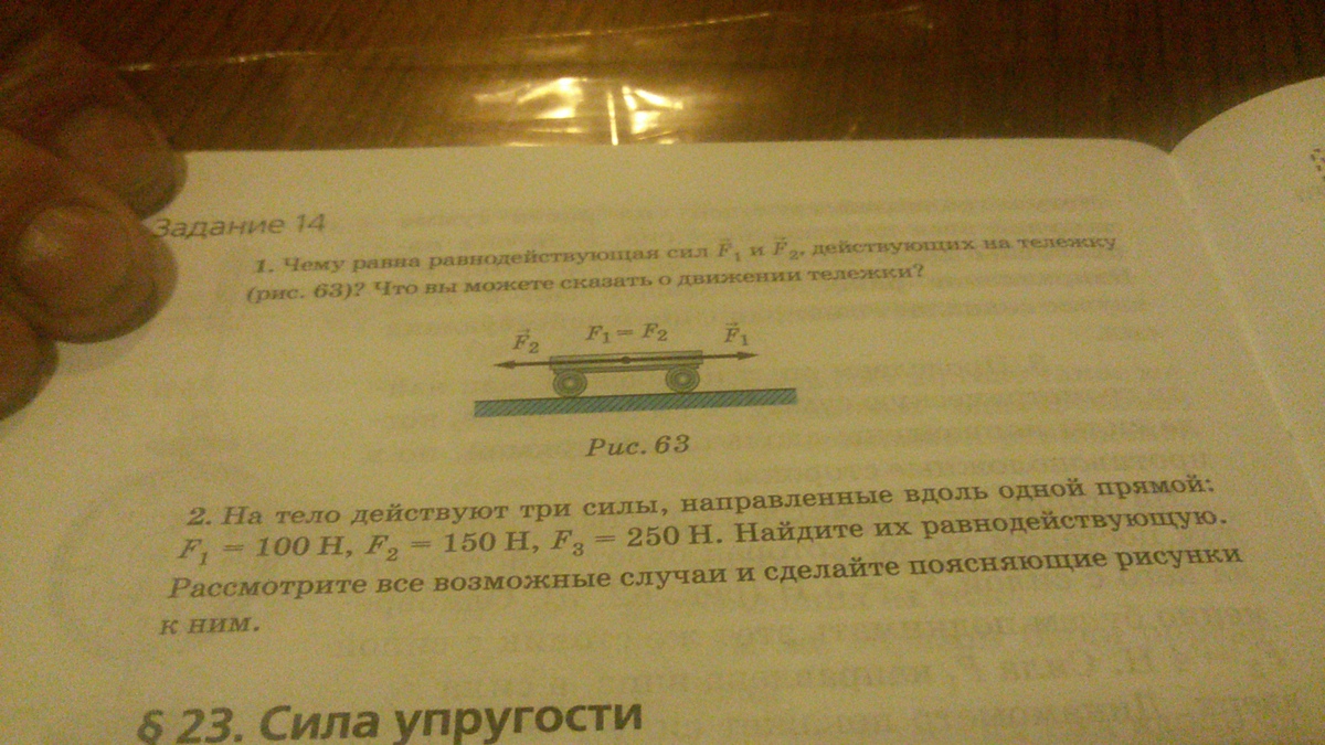рисуешь например тележку и направляешь в одну сторону 2 стрелочки , это 2 силы , в другую одну, любую