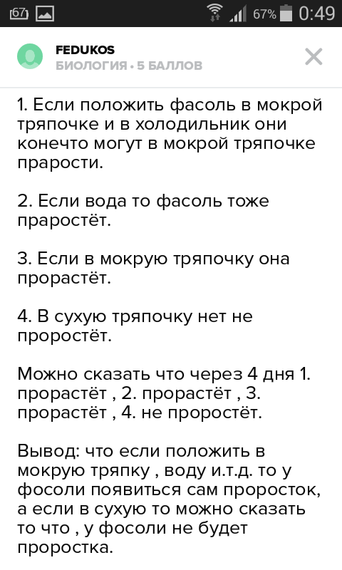 Просто фасоль не проросла ,а по биологии задали сделать опыт.