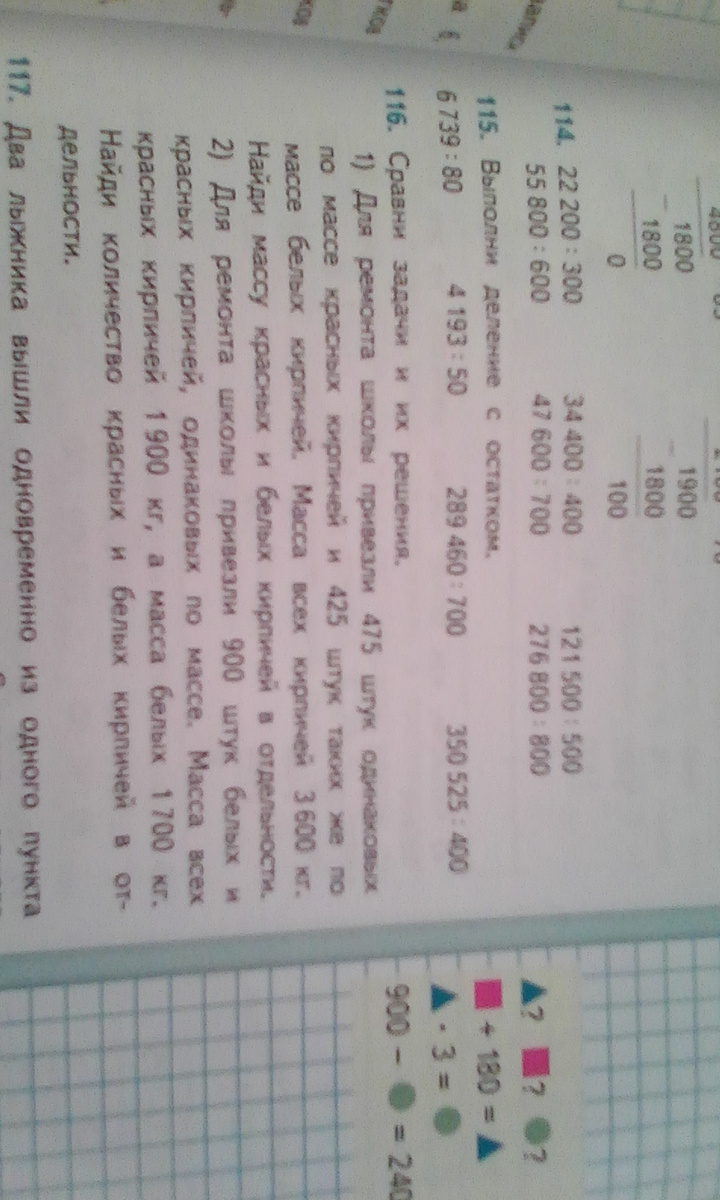 Ответ: Масса красных кирпичей 1900 кг,масса белых кирпичей 1700 кг