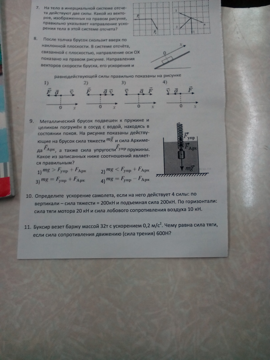 m=32 т=32000 кг, а=0,2 м/с^2, Fтр= 600H. F-?Так как силы направлены по одной прямой в противоположные стороны, то F-Fтр=ma, F= Fтр+ma, Fтр=600+32000*0,2= 7000 Н = 7кН.