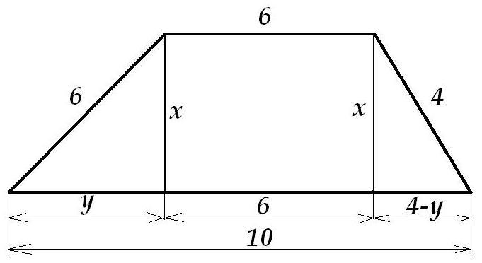 Теперь рассмотрим вариант существования трапеции с основаниями 10 и 6, и боковыми сторонами 4 и 6, и выявим её внешний вид: