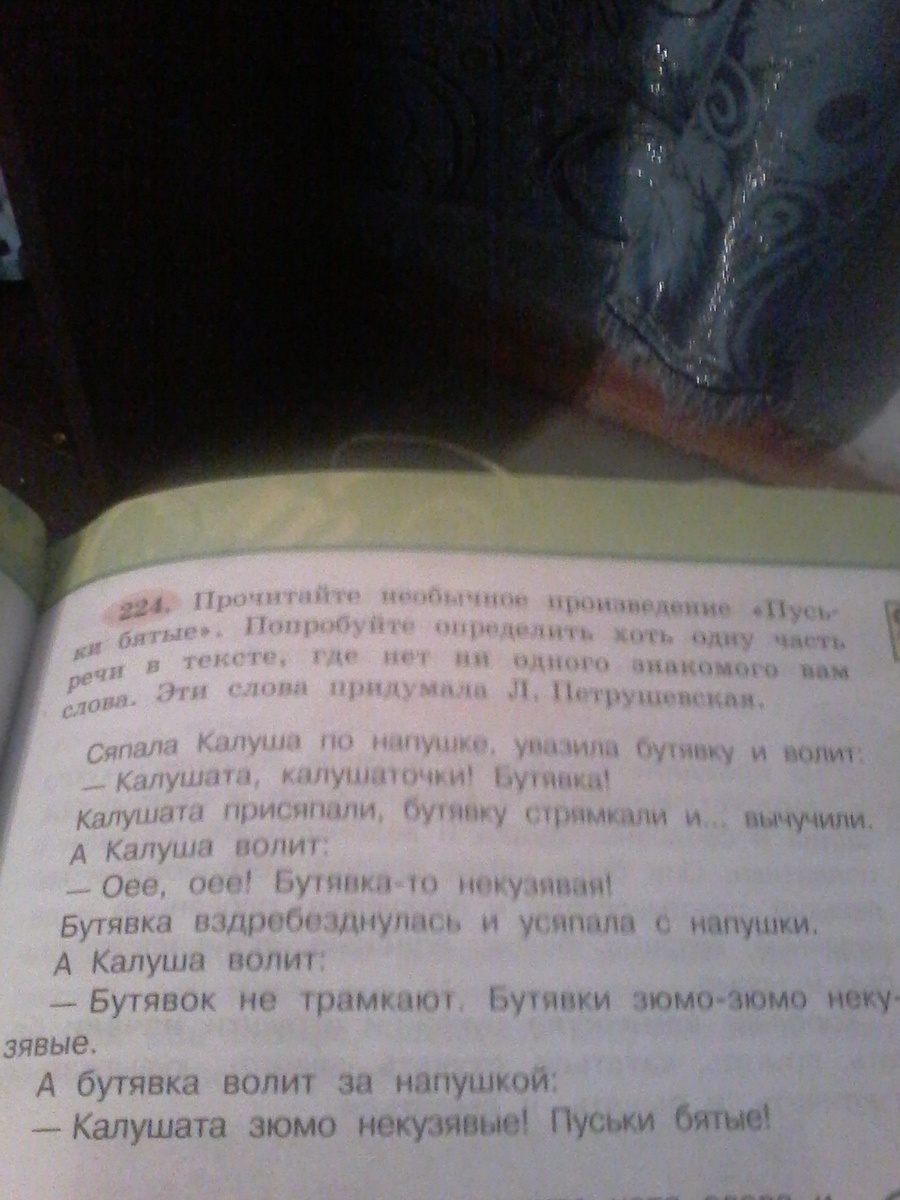 сяпала - глагол; напушка - имя существительное; некузявые - имя прилагательное; зюмо-зюмо - наречие.