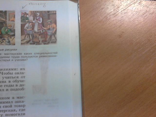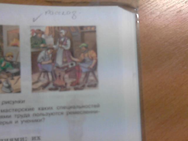 Это мастерская городского ремесленника. Это резчик по дереву. Он и его подмастерье изготавливают товар, женщина распродает его. На картинке можно увидеть что мастерская маленькая, поэтому там всего лишь 3 работника. Так же мастера и их подмастерья одеты в фартуки - чтобы не испачкать одежду.