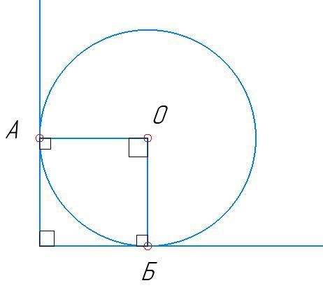 Учитывая, что стороны угла касаются окружности, то радиус соединяющий цент окружности и точку касания, перпендикулярен самой касательной.