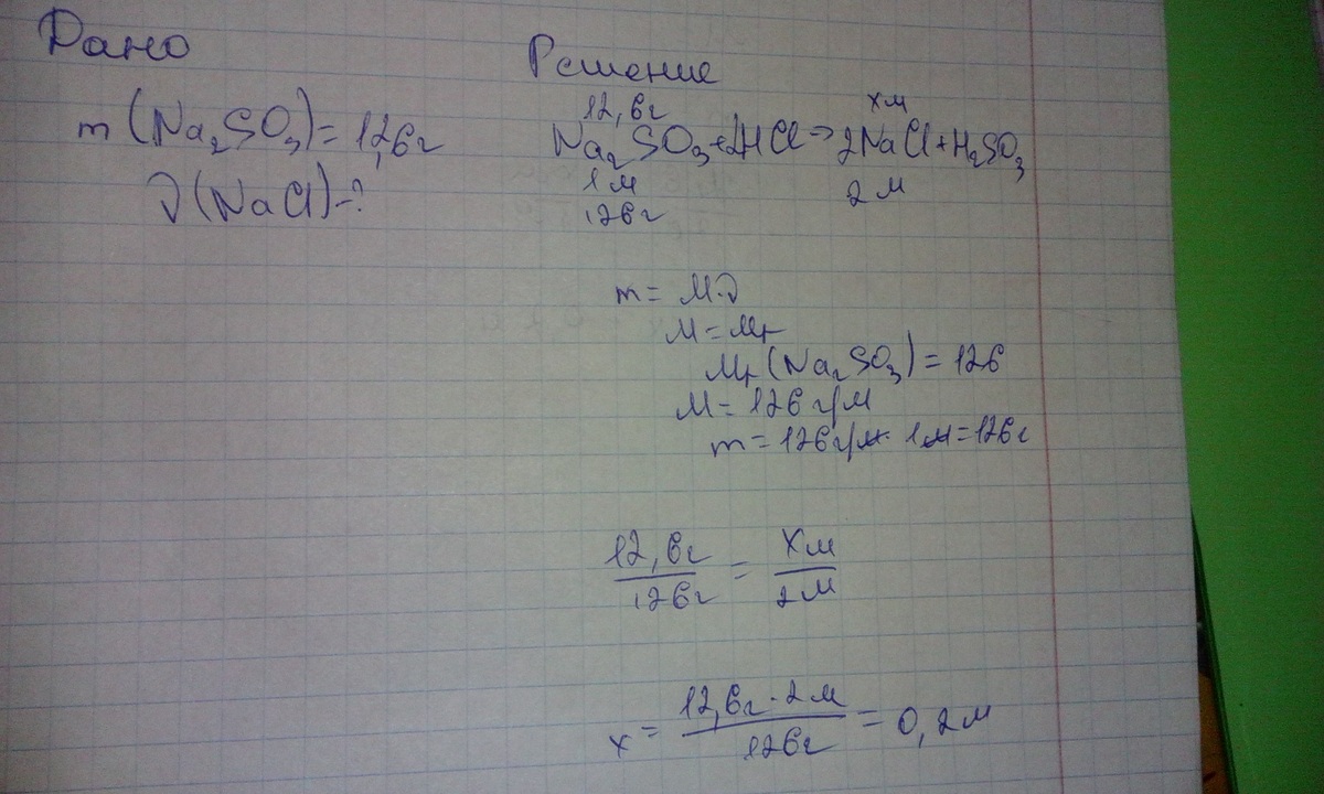 сколько молей хлорида натрия образуется при взаимодействии сульфита натрия массой 12.6 грамм с соляной кислотой
